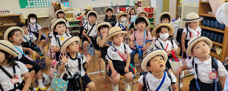 お帰りは先生が読んでくださる絵本、紙芝居を見たり、 歌を歌ったり、次の日の連絡事項を聞いて明日持ってくるものの確認をします。